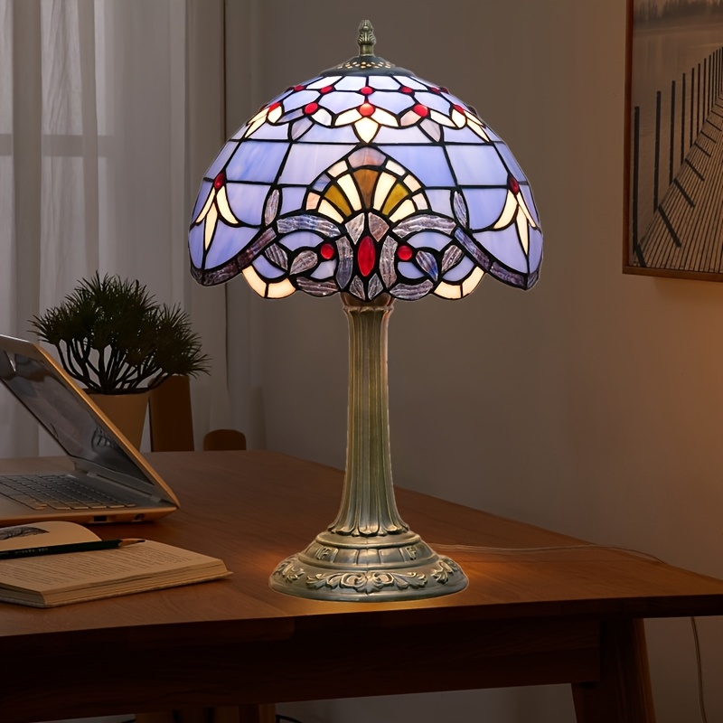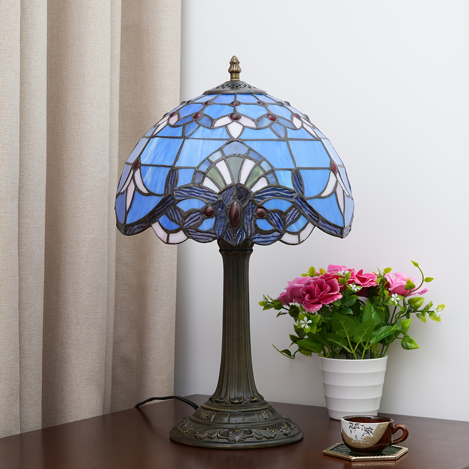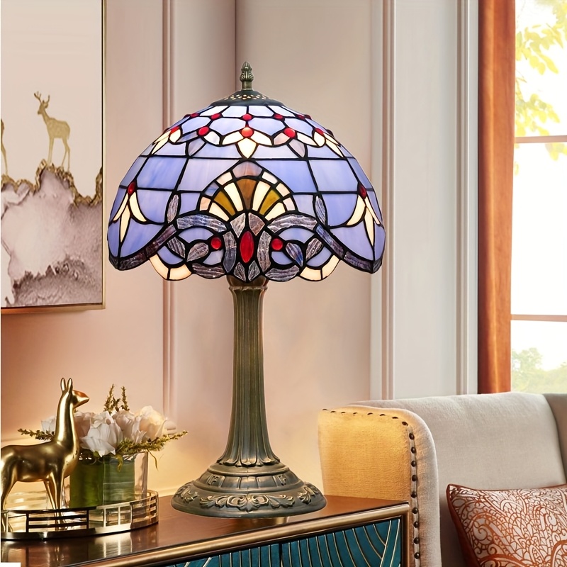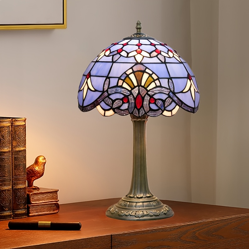 The 12″ Red Tulip Stained Glass Table Lamp offers a bold, vibrant floral presentation through its colored glass shade and detailed Art Deco influence. Designed with a pagoda-shaped profile, this lamp showcases layered red tulip patterns arranged in stained glass, making it a standout decorative piece for a variety of indoor spaces. Its floral theme, antique-inspired metal finish, and structured glass assembly give it a strong visual presence whether lit or unlit.